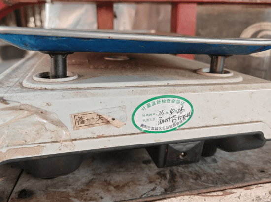 5分钟后,电动车停正在生果摊旁,杨杰带着赞扬人来到生果摊贩前,将赞扬人采办的生果放到电子秤上,屏幕的数字显示为500克,随后从包里掏出尺度砝码,“咔嗒”一声放正在电子秤上——屏幕数字显示是600克,便问王大爷是咋回事?摊从王大爷连声辩白:“今早暴风掀了遮阳棚,秤台晃得厉害,该当是电子秤没放稳形成的。。。。。。”。
